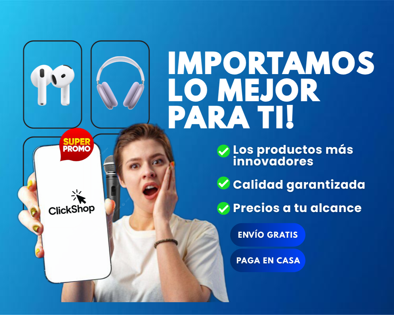 ¡Bienvenido a Tienda Click Shop! Somos una tienda online especializada en productos innovadores y populares. Contamos con varios años de experiencia en el mercado y miles de pedidos entregados con éxito en todo el país. En Tienda Click Shop, nos enfocamos en ofrecer excelente calidad, atención personalizada y precios especiales en cada producto. Disfruta de envío gratis y pago contra entrega en cualquier rincón de Colombia.